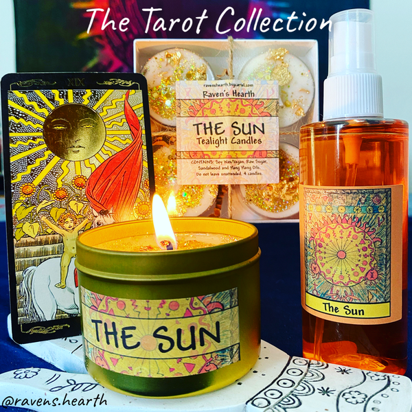 THE SUN is our first featured card. Its energies are complimentary to the coming of Summer and the recent Solstice. THE SUN tarot card signifies positivity, optimism — glass half full!! — warmth and exciting energy. The Sun is the source of all life, and these products will support you during this warm season.