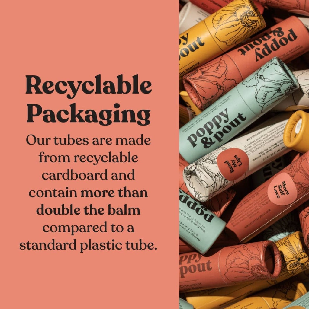 Our wild honey lip balm is a soft and savory vibe for your lips! It’s subtle and sweet and will hydrate your lips for hours. Every Poppy & Pout lip balm is made with 100% natural ingredients and hand-poured into eco-friendly cardboard tubes!